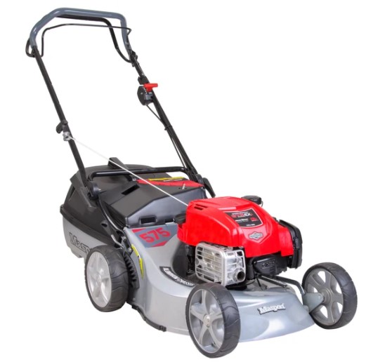The 575 AL SP is a self-propelled cut, catch and mulch lawnmower with a 46-litre plastic grass catcher.