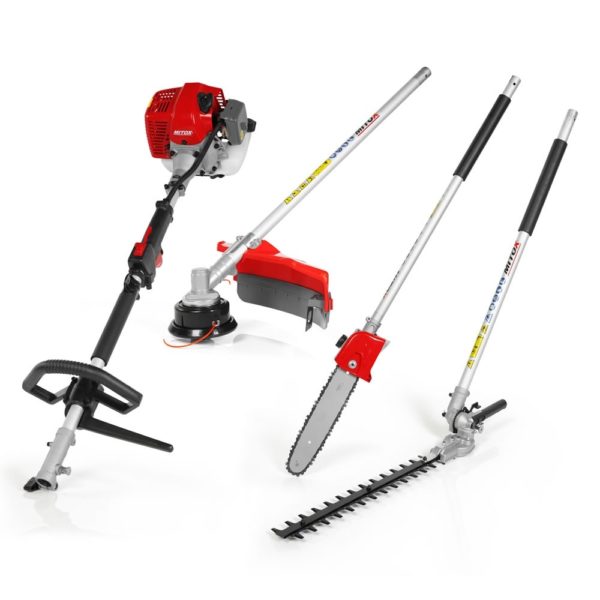 – Multi-Tool package includes: Hedgetrimmer attachment, pole saw attachment, brushcutter attachment with nylon bump feed head & heavy duty tri-blade and a 1 meter extension shaft